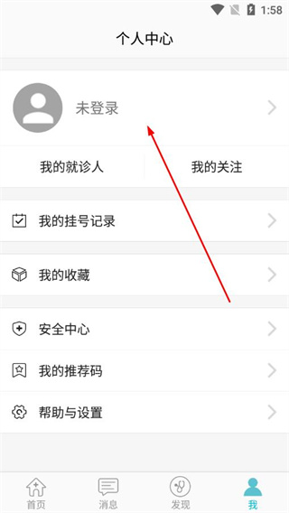 1、打开上海安达医院app首页,点击底部导航栏的我。