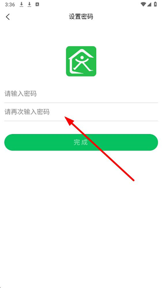 3、进入设置密码页面,依次输入密码和再次输入密码,完成后点击完成按钮。