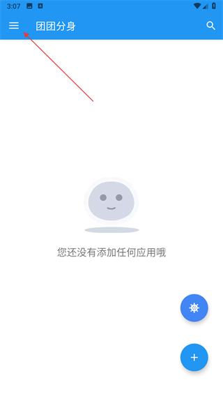 1、打开团团分身应用,进入主页面,找到左上角的菜单按钮,点击展开列表。