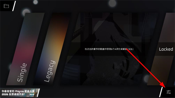 1、进入Phigros界面,找到右下角的设置选项并点击,进入设置页面。