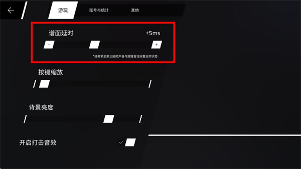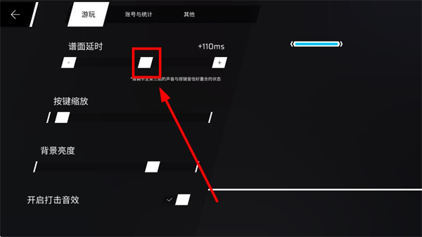 3、拖动谱面延时对应的滑块,或点击加减按钮,即可调整延时时长。