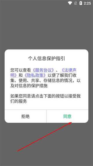 1、打开预防接种服务APP,在弹出的个人信息保护指引弹窗中点击同意。