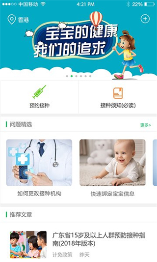 预防接种服务APP是深圳市汇涛信息技术有限责任公司专为0-6岁儿童,提供预约接种、疾病预防等儿童健康管理服务的产品。其中预防接种预约等专业板块的版权及数据所有权均归当地卫生管理部门所有,并受其管理和指导。