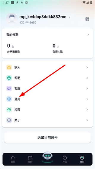 2、在我的页面,找到通用选项并点击,进入通用设置界面。