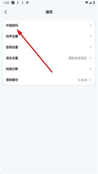 3、在通用设置页面,选择开锁密码选项,进入对应页面。