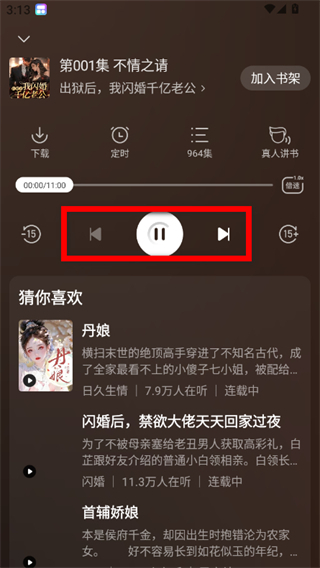 4、在播放界面,即可通过控制按钮收听该书籍内容。