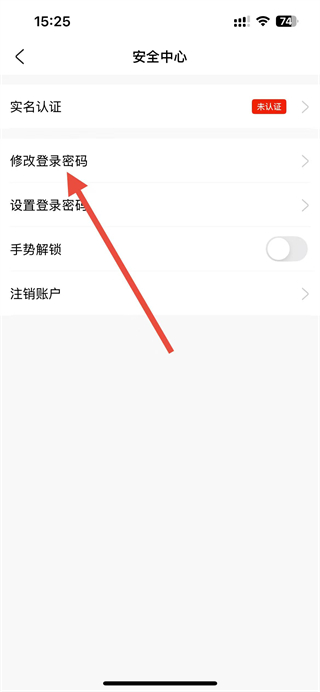 4、在安全中心界面,选择修改登录密码选项,进入密码修改页面。