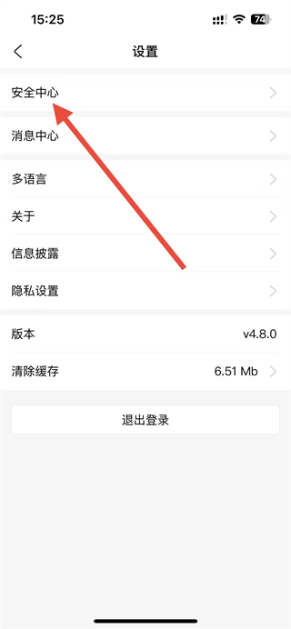 3、进入设置页面后,选择安全中心选项,进入安全管理操作界面。