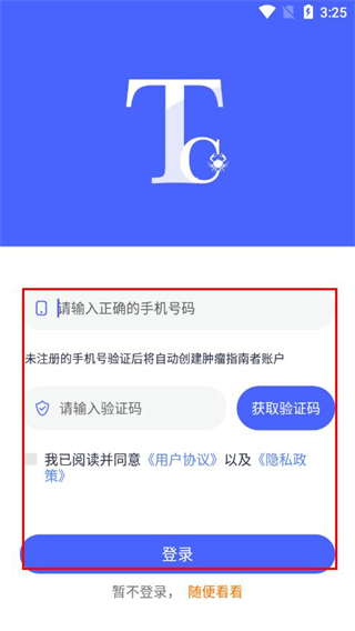 3、填写号码、验证码填,勾选协议,点击登录。