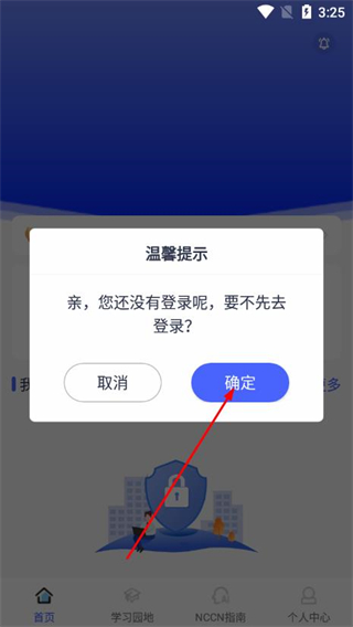 2、在弹出的您还没有登录温馨提示框中点击确定。
