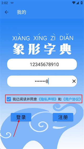 4、勾选同意隐私声明和用户协议的选项,点击登录按钮完成账号登录操作。
