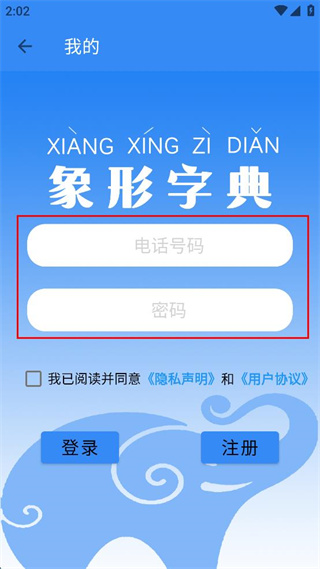 3、在登录页面的对应输入框中,分别填写手机号码和密码信息。