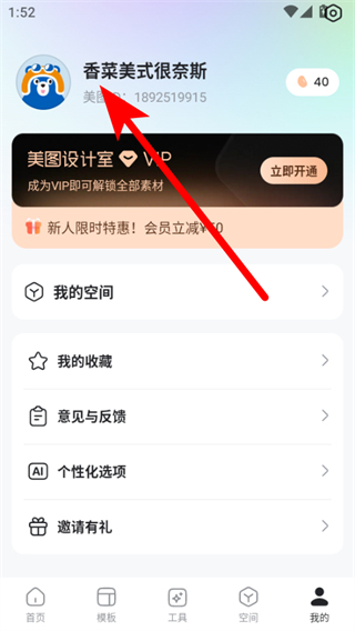 1、打开美图设计室APP,点击底部导航栏的我的选项,进入个人页面。