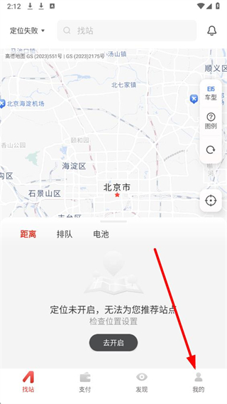 1、在奥动换电app找站页面点击我的选项,进入个人页面。