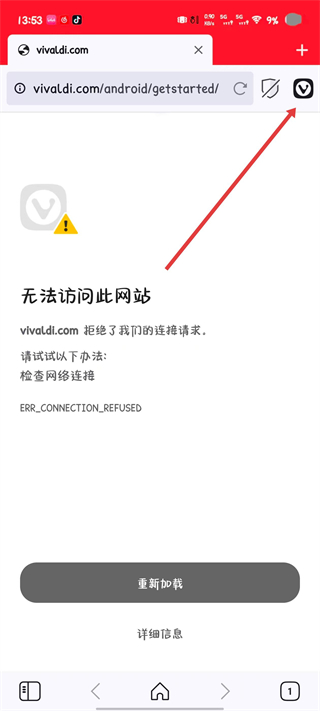 1、打开Vivaldi浏览器,点击右上角的图标。