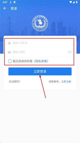 3、输入手机号和密码,勾选隐私政策,点击立即登录即可登录账号。