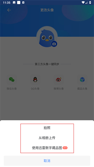 4、在弹出的选项中选择合适的方式,选定图片后完成头像更换的操作。