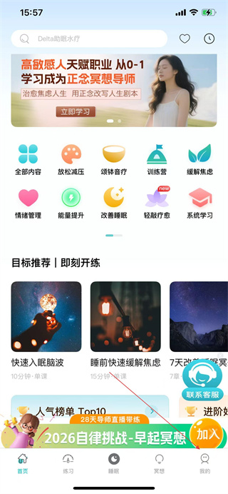 -练习页新增今日冥想进度环,定制练习目标,放松减压,助眠修心;