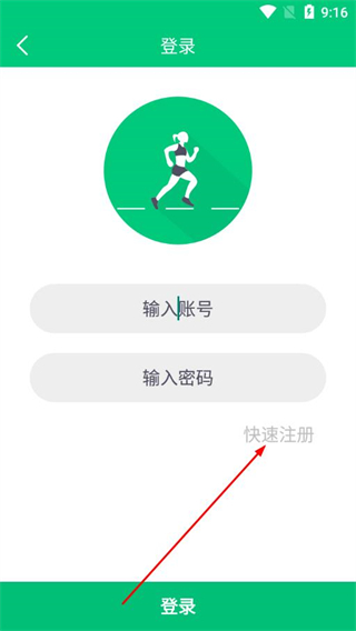 1、打开来赚步app的登录页面,在页面右侧找到快速注册并点击,进入账号注册界面。
