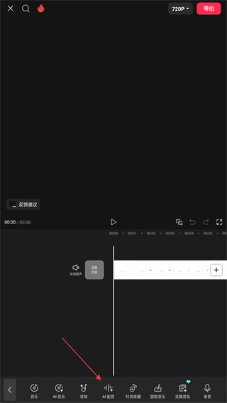 4、在音频功能列表里,选择AI配音,启动对应的配音流程。