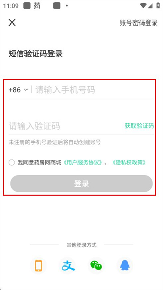 5、在登录页面,选择登录方式,填写信息后完成新账号的登录,即可切换账号。