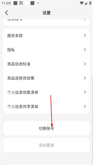 3、在设置页面,点击切换账号选项,进入切换账号页面。