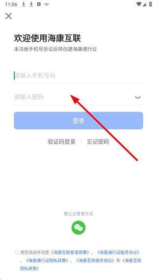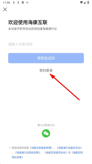 4、在密码登录界面,输入手机号和密码,勾选相关协议后点击登录,即可完成密码登录操作。