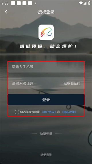 3、填写手机号、获取并输入验证码,勾选协议,点击登录。