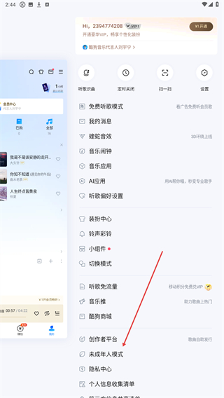 3、在功能设置页面中,找到未成年人模式选项并点击,弹出模式开启的确认弹窗。