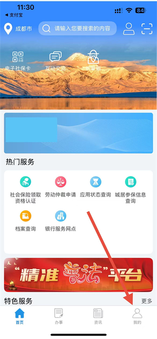 1、在四川人社App首页,点击右下角我的选项,进入个人相关页面。