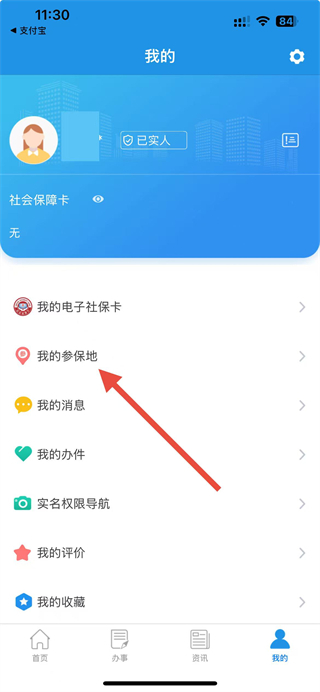 2、在个人界面中,选择我的参保地选项,进入参保地修改页面。