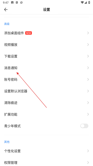 3、找到消息通知,点击该选项进入消息通知的调整界面。