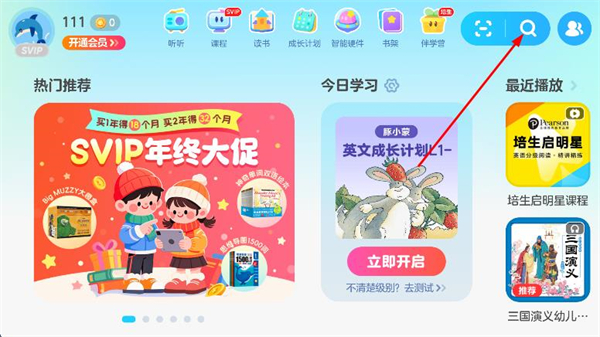 1、打开豚小蒙,点击右上角的搜索,找到想要下载的绘本。