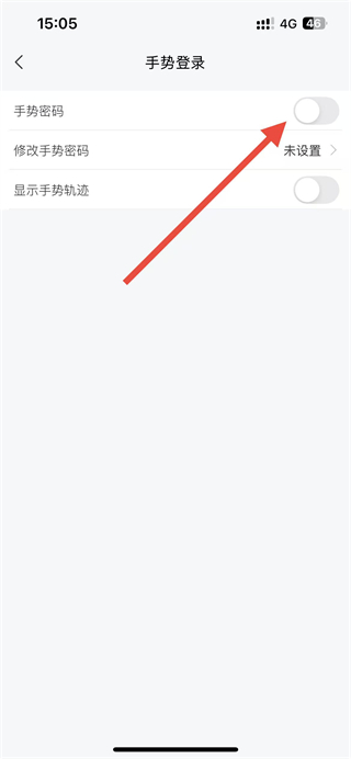 4、在手势登录页面,开启手势密码开关,按提示设置手势密码,即可完成手势登录配置。