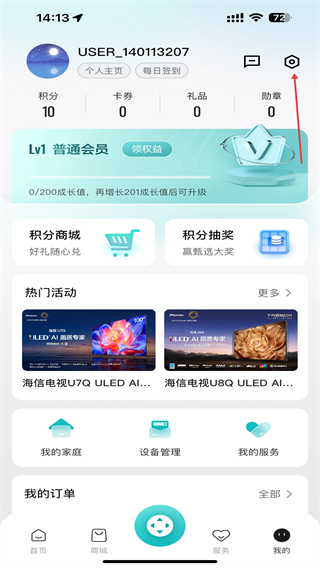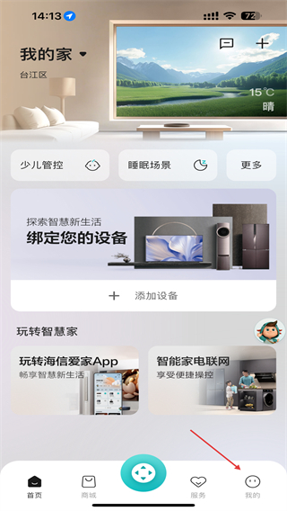 1、打开海信爱家App,点击底部导航栏中的我的选项。