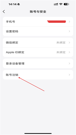 4、在账号与安全的界面内,点击下方账号注销的按钮即可。
