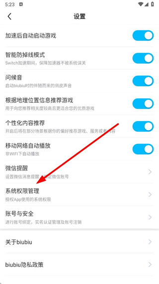 4、在设置界面点击系统权限管理选项,进入系统权限管理界面。
