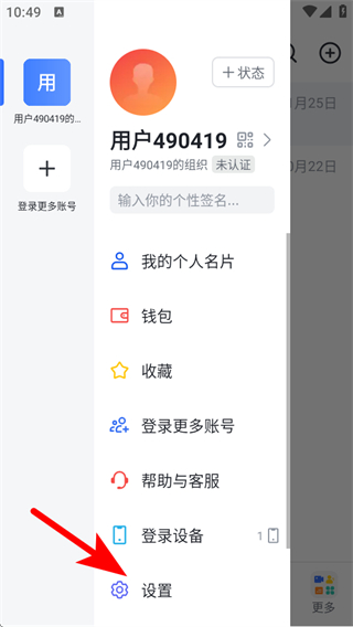 2、在菜单中找到设置选项并点击,进入设置操作的界面。