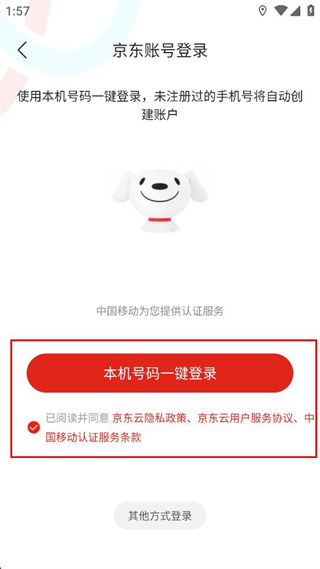 4、进入登录界面后,勾选已阅读并同意相关条款,点击本机号码一键登录按钮完成操作。