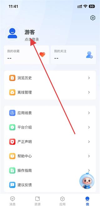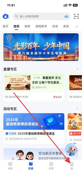 1、打开智慧中小学,点击底部导航栏最右侧的我选项。