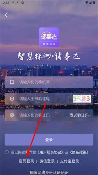 3、在登录界面,点击密码登录选项,切换至密码登录的信息填写界面。