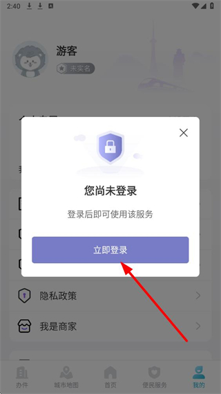 2、在弹出的您尚未登录窗口中,点击立即登录按钮,进入登录操作界面。