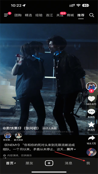 1、启动抖音软件,点击底部导航栏的消息的图标。