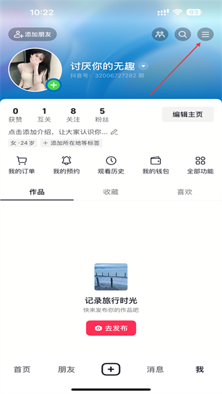2、在个人主页的右上角,点击三条横线样式的菜单按钮。