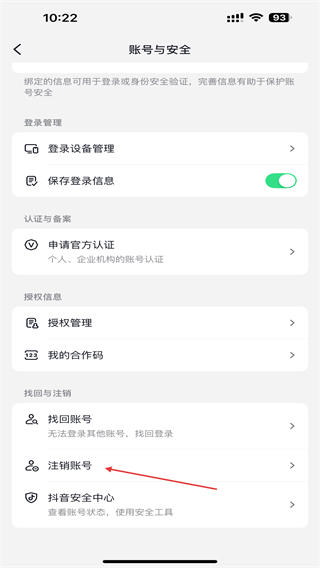5、在账号与安全界面中,点击注销账号选项,即可注销成功。