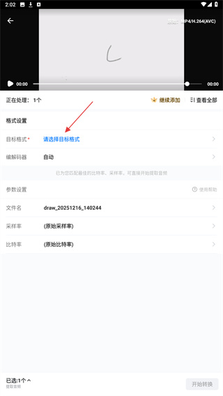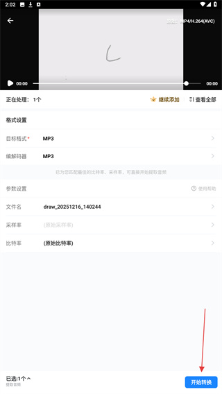 5、确认目标格式等参数后,点击页面右下角的开始转换按钮。