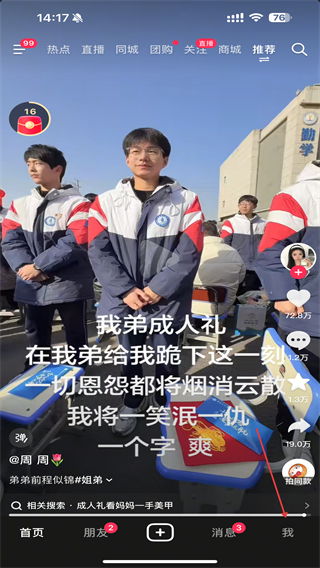 1、打开抖音,点击底部导航栏的我,进入个人中心页面。