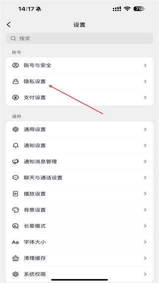 4、在设置页面里,点击隐私设置选项,进入隐私相关配置界面。