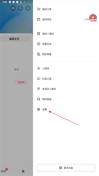 2、在个人中心的页面,点击右上角的菜单按钮,展开功能列表。