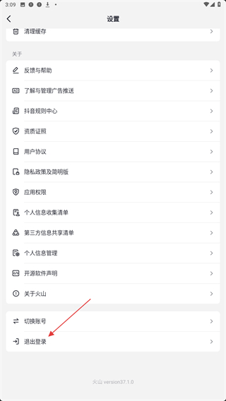 4、在设置页面内,向下滑动找到退出登录的选项并点击。